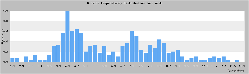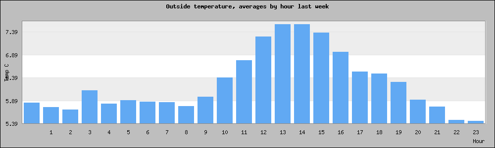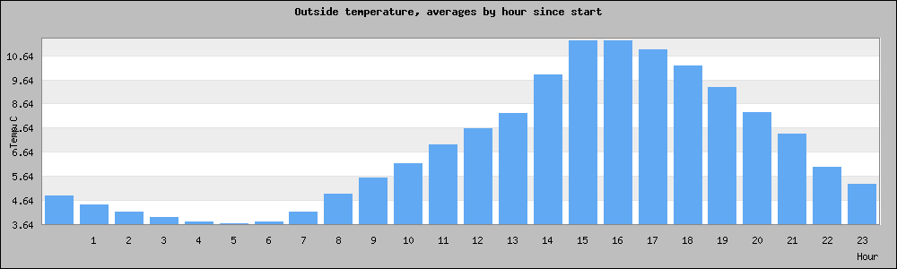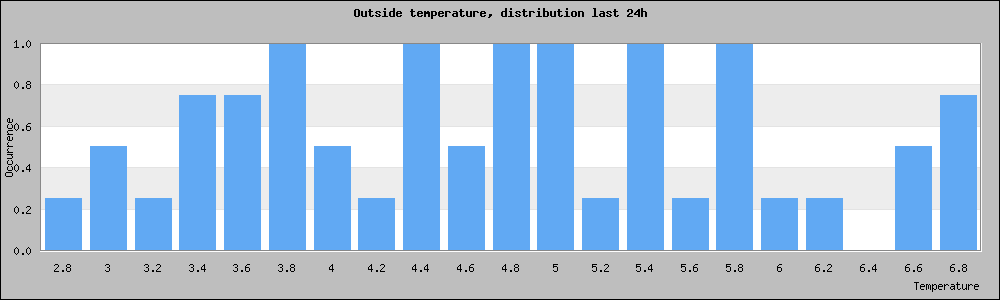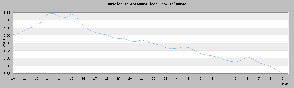 | Outside | 3.00 C | 4.84 C | 2.81 C, 09:00:03 | 6.88 C, 13:30:03 | 1.11 C |