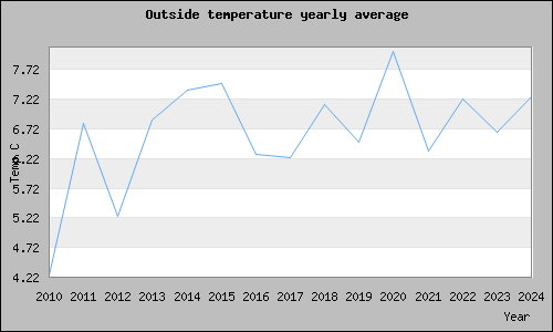 | Outside | 6.75 C | -27.87 C, 2024-01-05 09:30:04 | 53.5 C, 2022-06-28 16:30:06 | 10.58 C |
