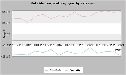 | Outside | -26.74 C, 2024-01-05 | 31.71 C, 2018-07-18 |