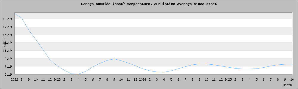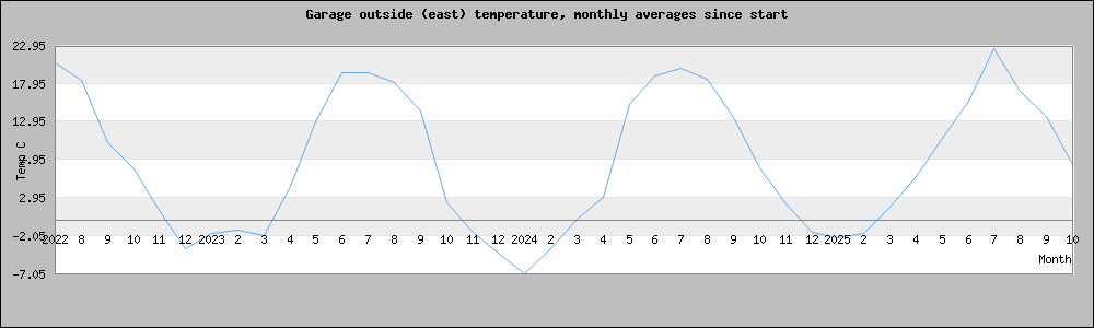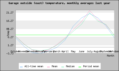 | October | 5.8 C | -8.81 C, 2023-10-30 23:00:04 | 15.63 C, 2023-10-02 13:00:05 | 4.33 C |