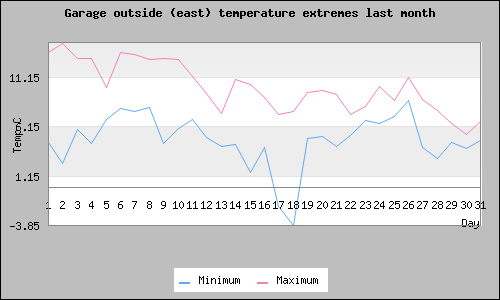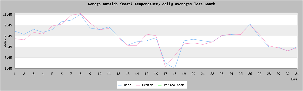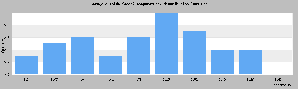 | Temperature | 3.38 C | 5.05 C | 3.31 C, 09:00:03 | 6.63 C, 15:00:03 | 0.89 C |