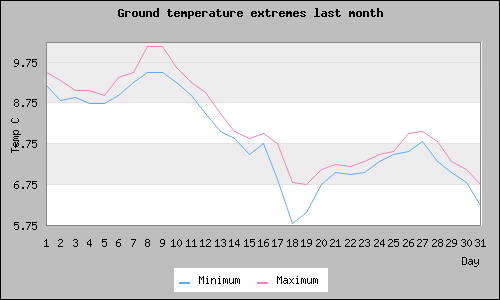 | September | 11.44 C | 7.19 C, 2019-09-25 14:30:04 | 16.19 C, 2019-09-02 13:00:03 | 1.71 C |