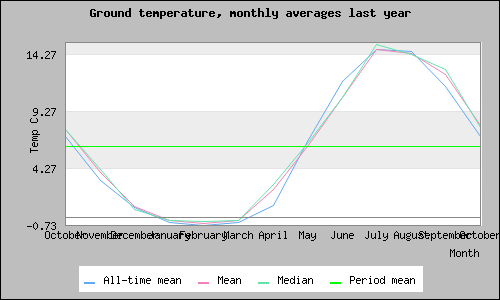 | October | 7.06 C | 1.63 C, 2023-10-31 13:00:04 | 12.06 C, 2023-10-01 00:30:04 | 1.98 C |