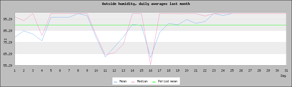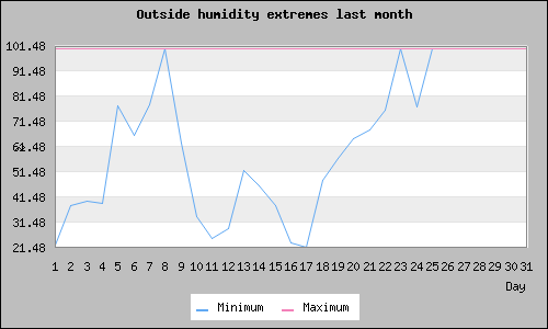 | Outside humidity | 99.9 % | 99.9 %, 2025-10-25 01:00:02 | 99.9 %, 2025-10-25 01:00:02 | 0 % |
