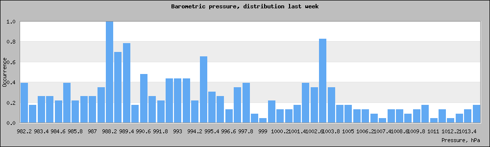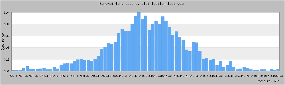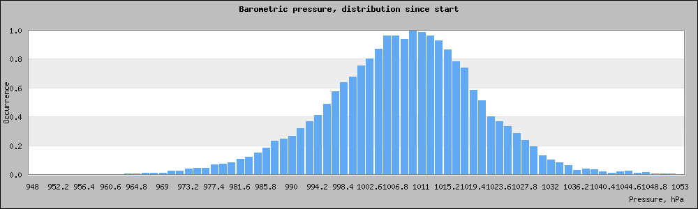 | Barometric pressure | 1008.5 hPa | 948.02 hPa, 2020-02-10 16:00:03 | 1053.04 hPa, 2012-02-01 11:30:05 | 12.28 hPa |