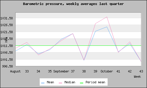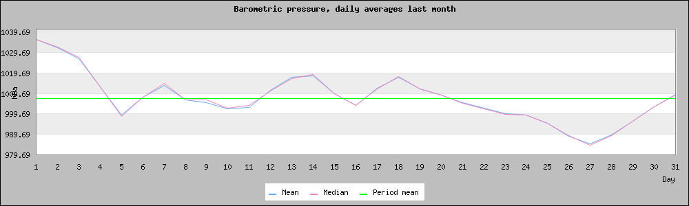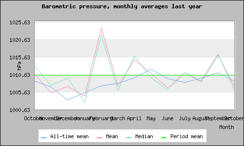 | October | 1008.86 hPa | 968.02 hPa, 2021-10-22 03:00:03 | 1044.47 hPa, 2016-10-05 10:00:02 | 12.72 hPa |