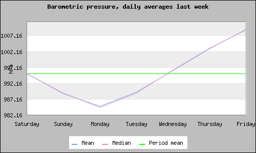 | Friday | 1008.219 hPa | 961.23 hPa | 1048.88 hPa | 12.568 hPa |