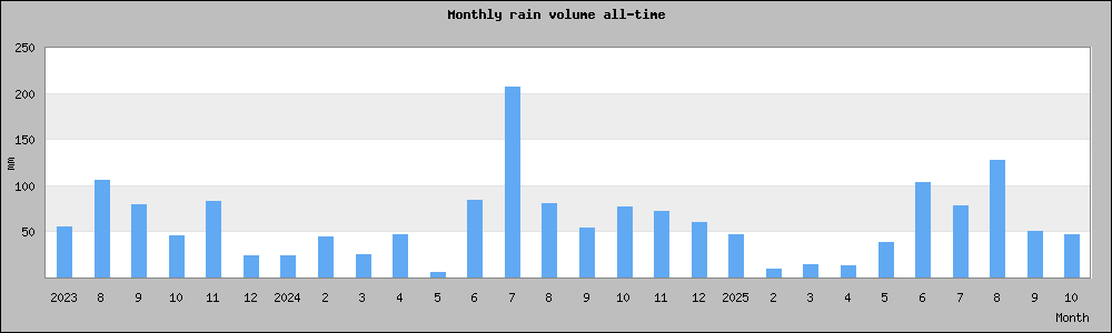 | Rain statistics | 47.14 mm | 2025-10-08 | 10.1 mm |