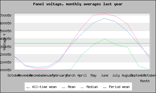 | Panel voltage | 0.14 V | 3.4E-5 V, 2025-10-14 21:30:03 | 2.05654 V, 2025-10-01 17:00:03 | 0.33 V |